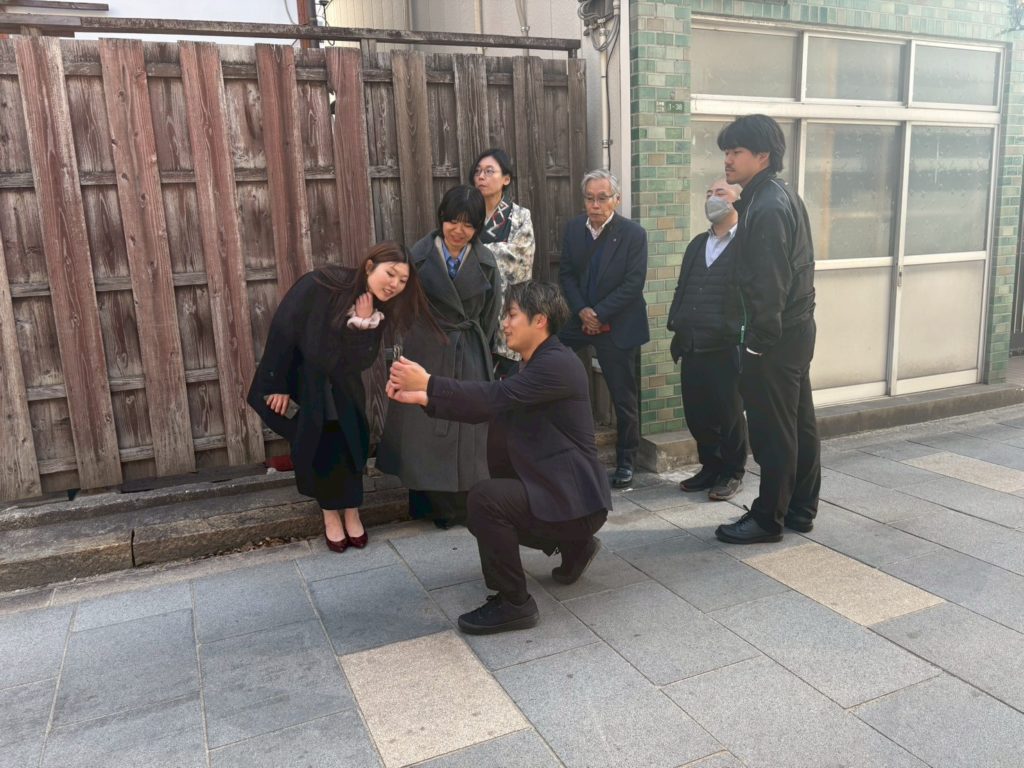 撮影時に職人さんが恥ずかしがる。