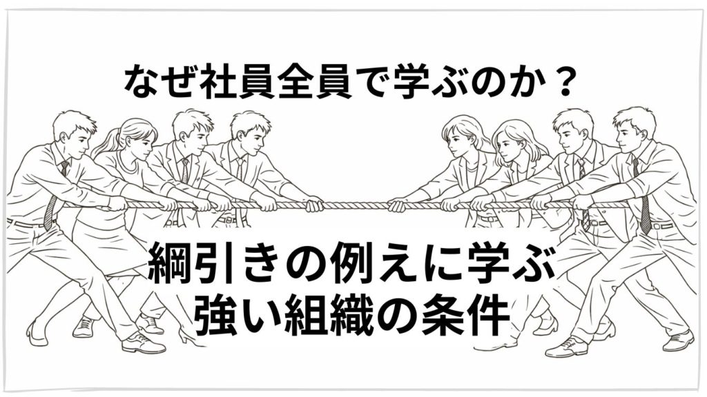 なぜ社員全員で学ぶのか?綱引きの例えで気づいた強い組織の条件 先日、ある会社様へ打ち合わせに伺った際、社長様からとても印象深いお話を伺いました。 この会社では、社員教育の一環として社内勉…